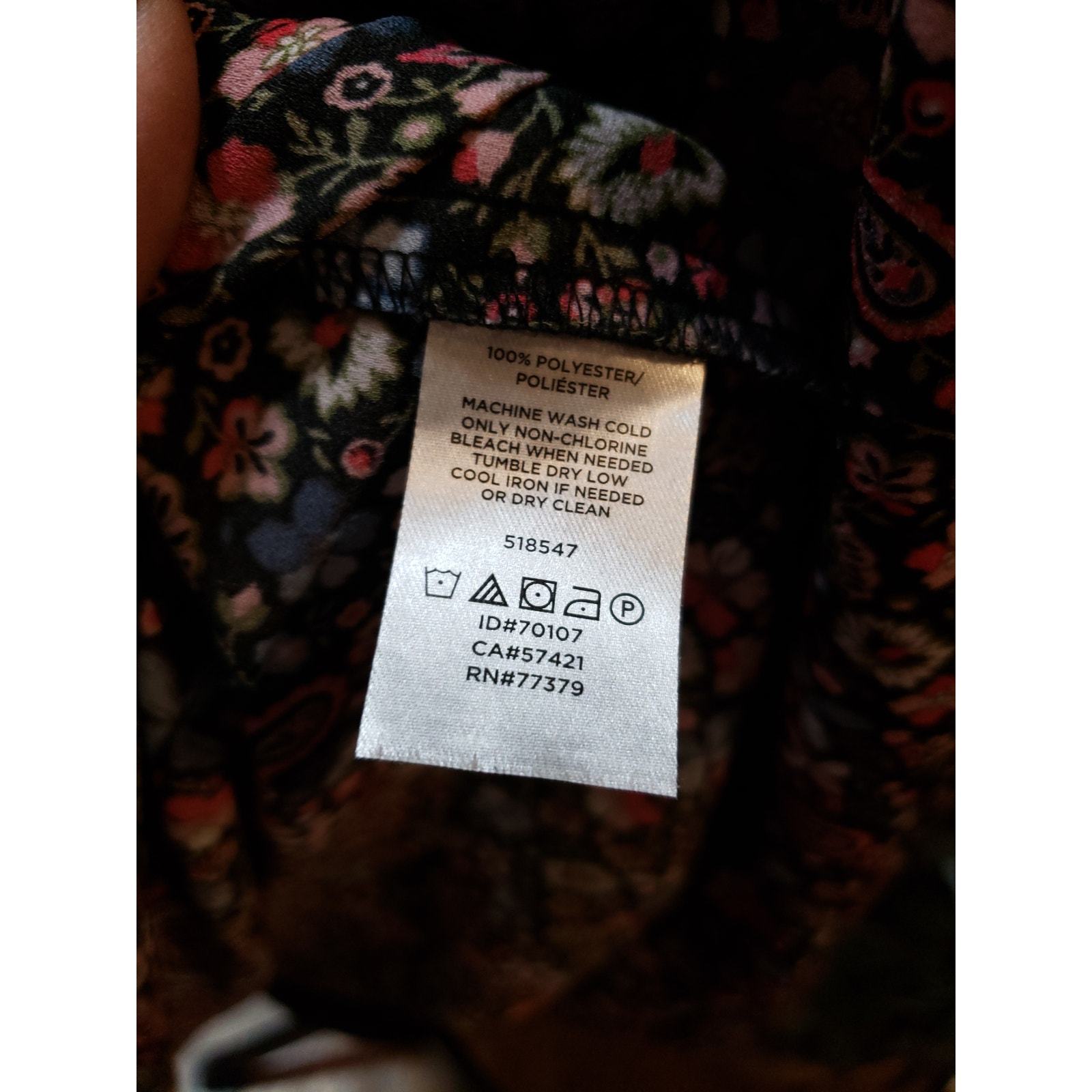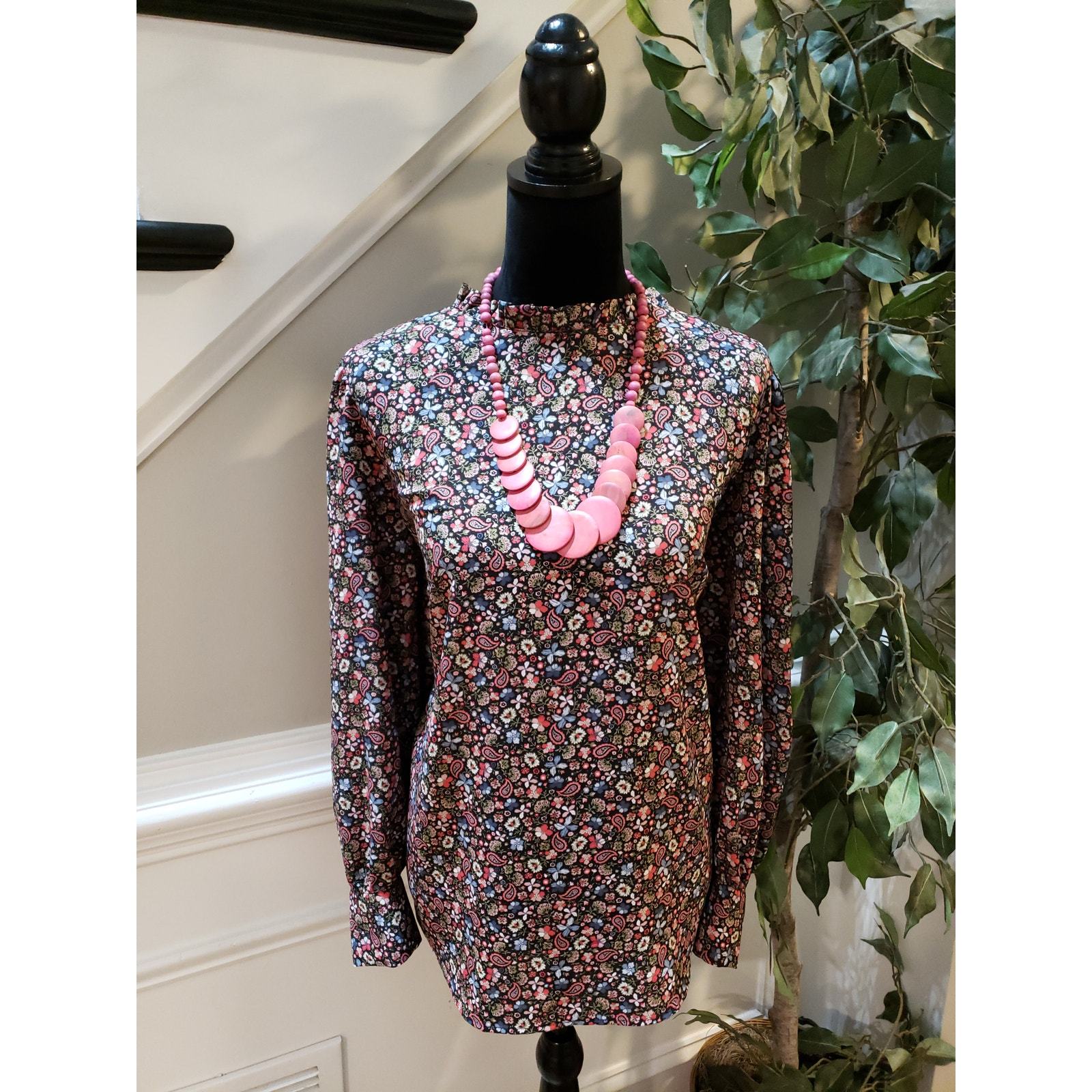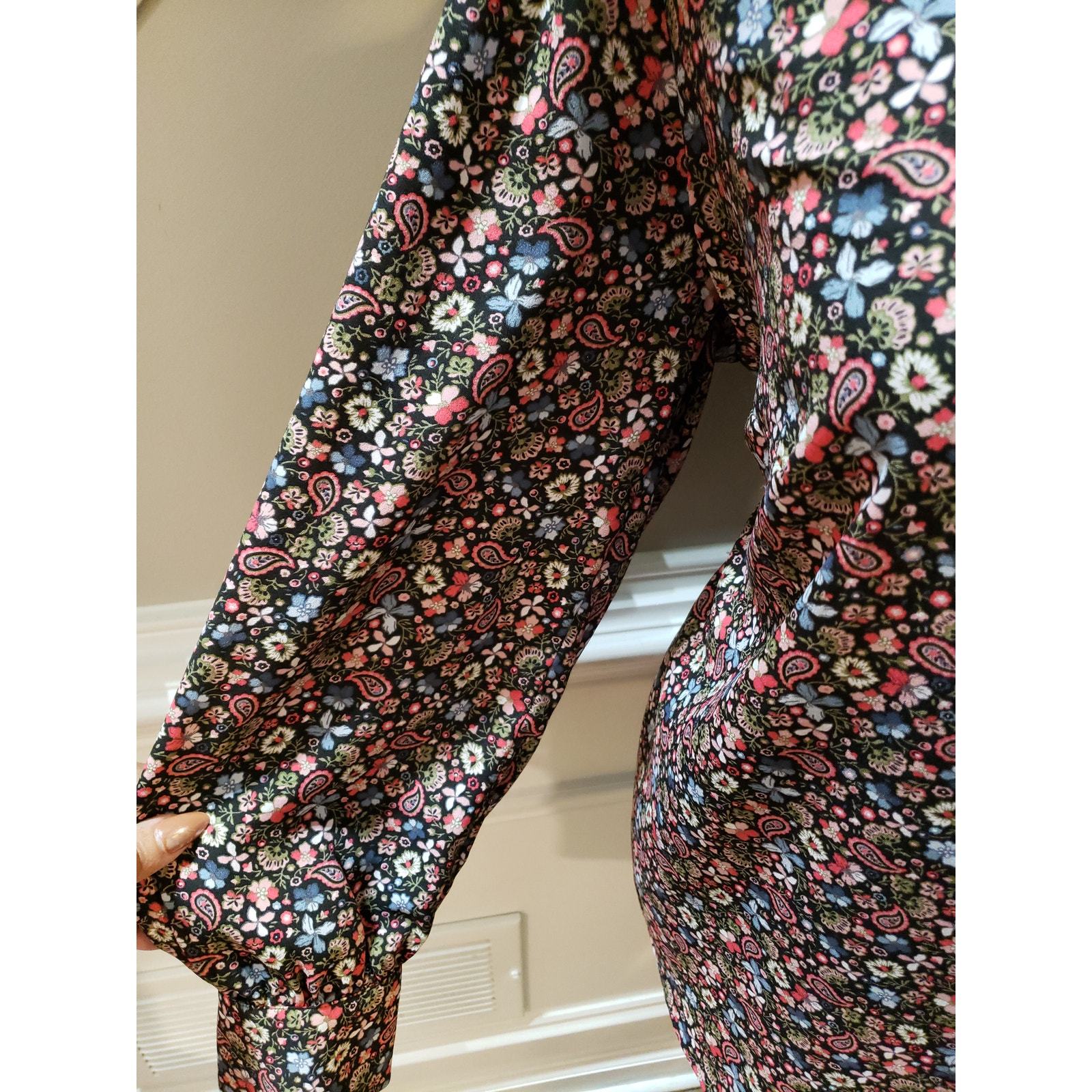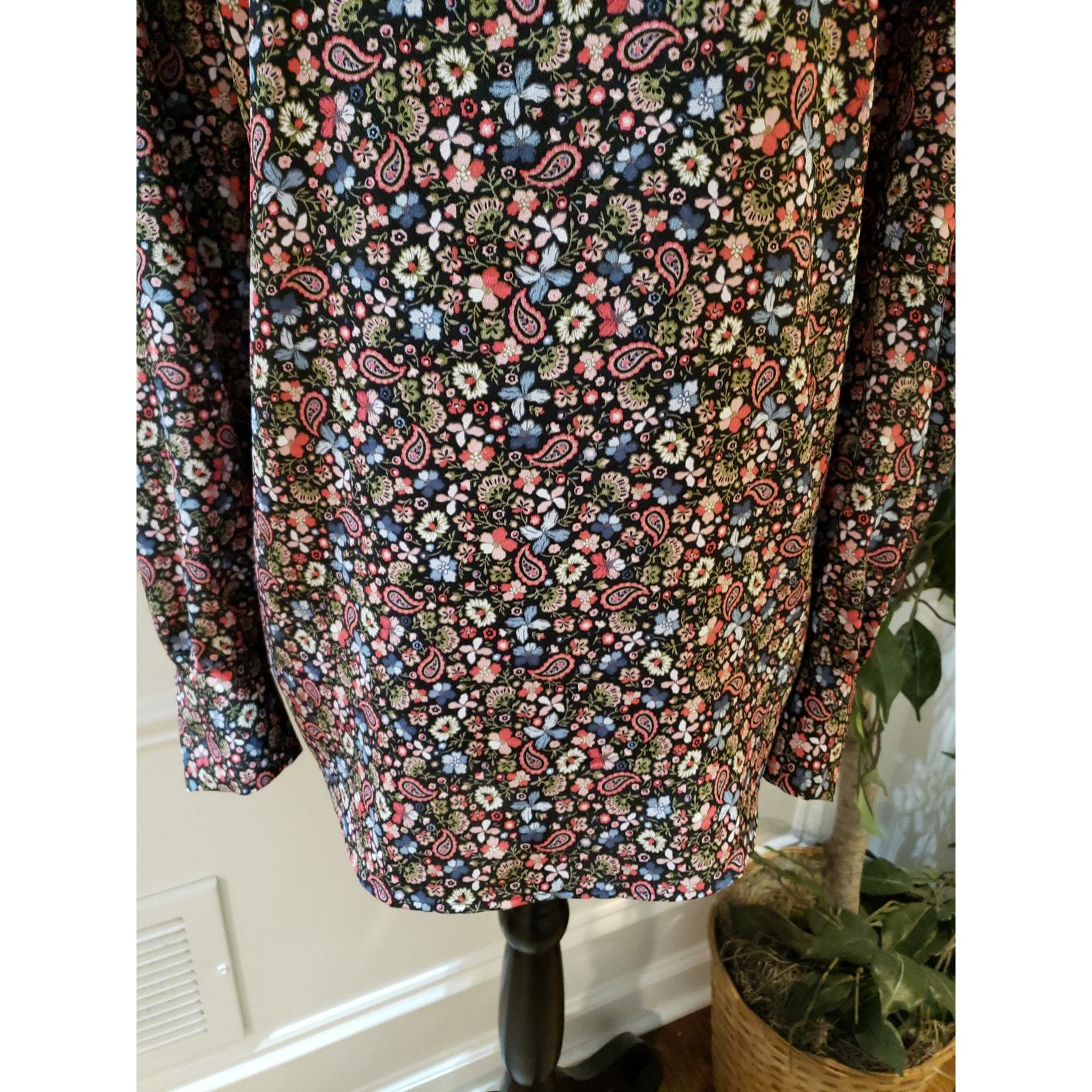 Add charm to your wardrobe with this LOFT Plus women?s blouse in size 16. Featuring a vibrant multicolor floral and paisley print on a black background, this long sleeve top has a flattering relaxed fit, button cuffs, and a tie-back ruffle neckline. Perfect for work or casual outings, it?s made from 100% polyester for easy care and lasting wear.