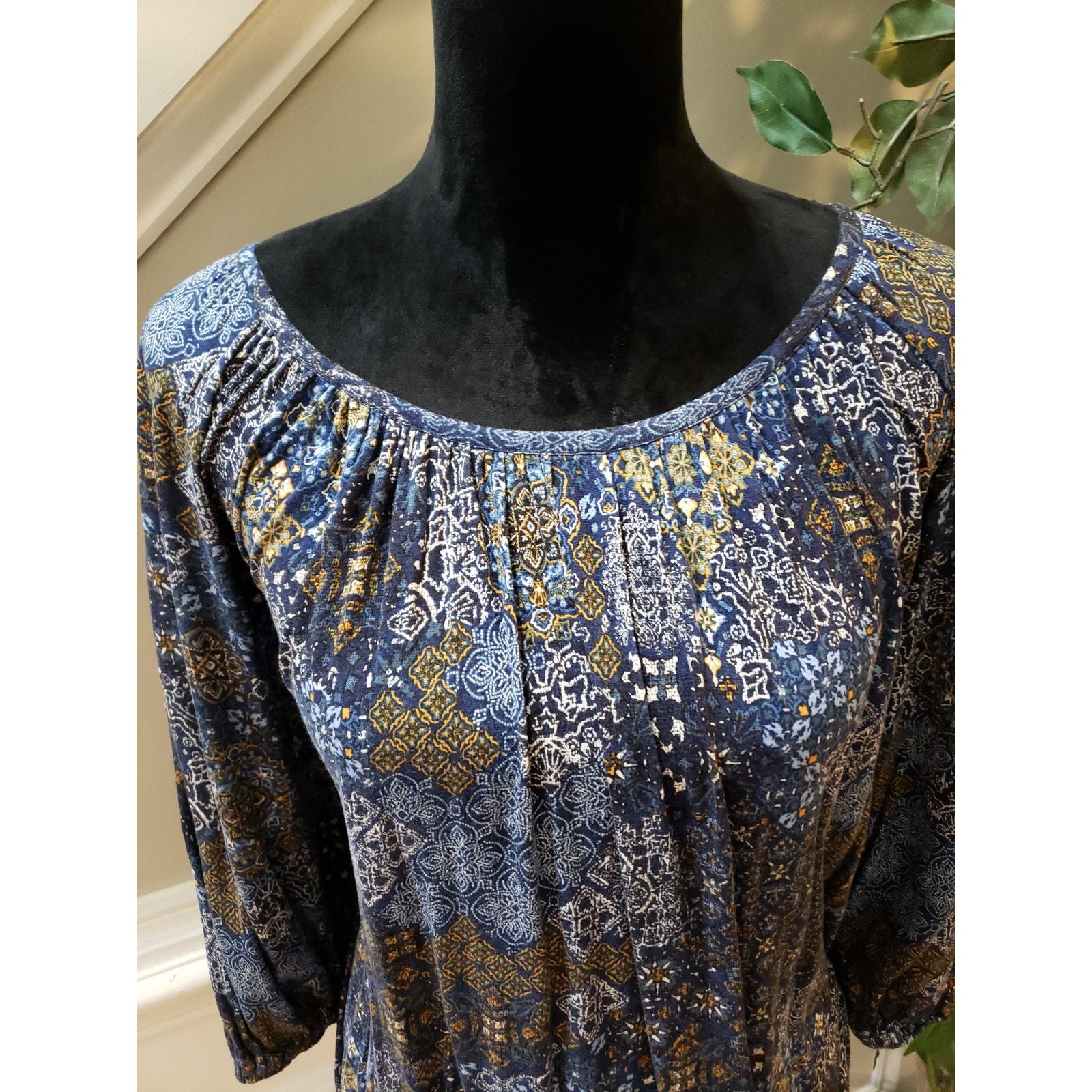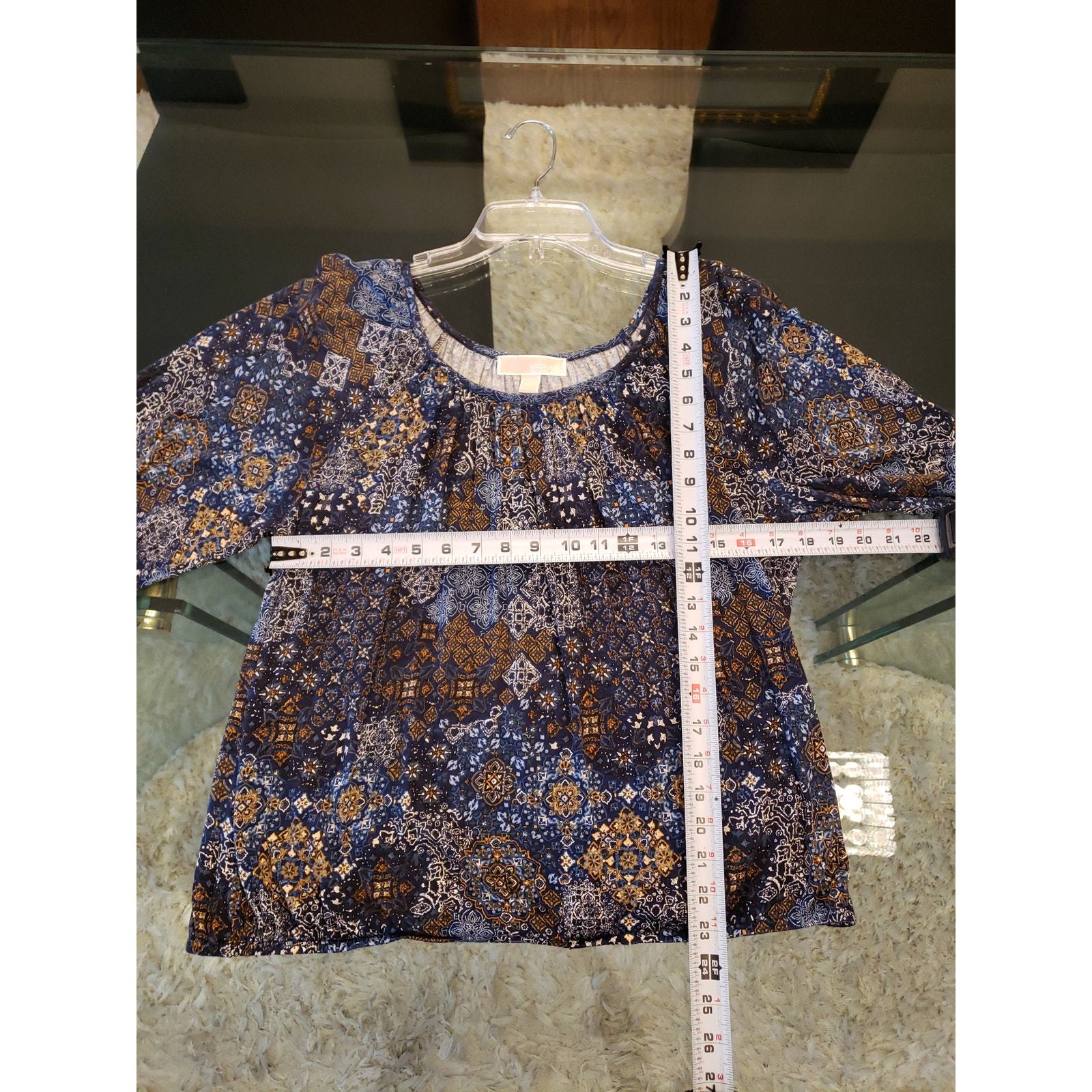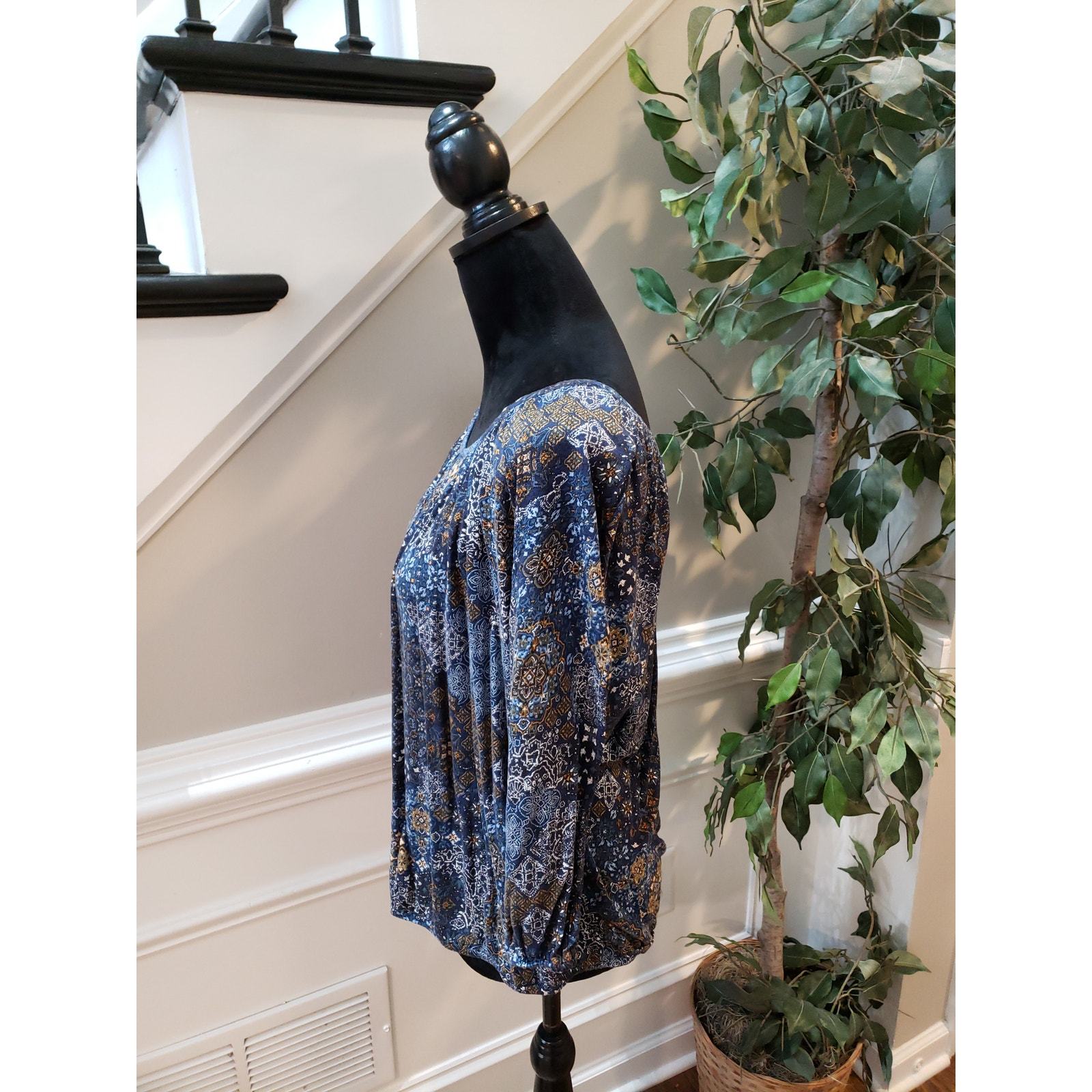 Michael Kors Blouse Womens PXL Blue Gold Boho Peasant Top 3/4 Sleeve Viscose