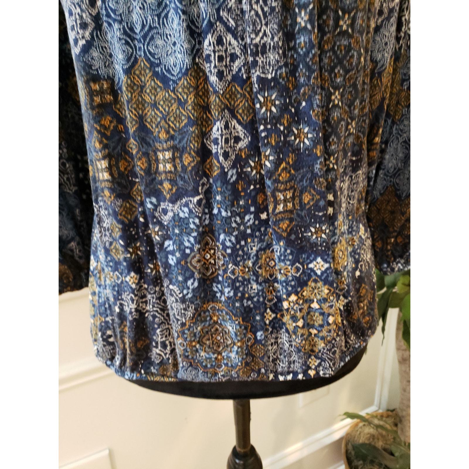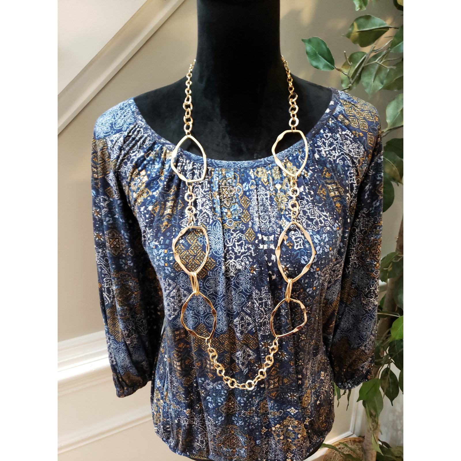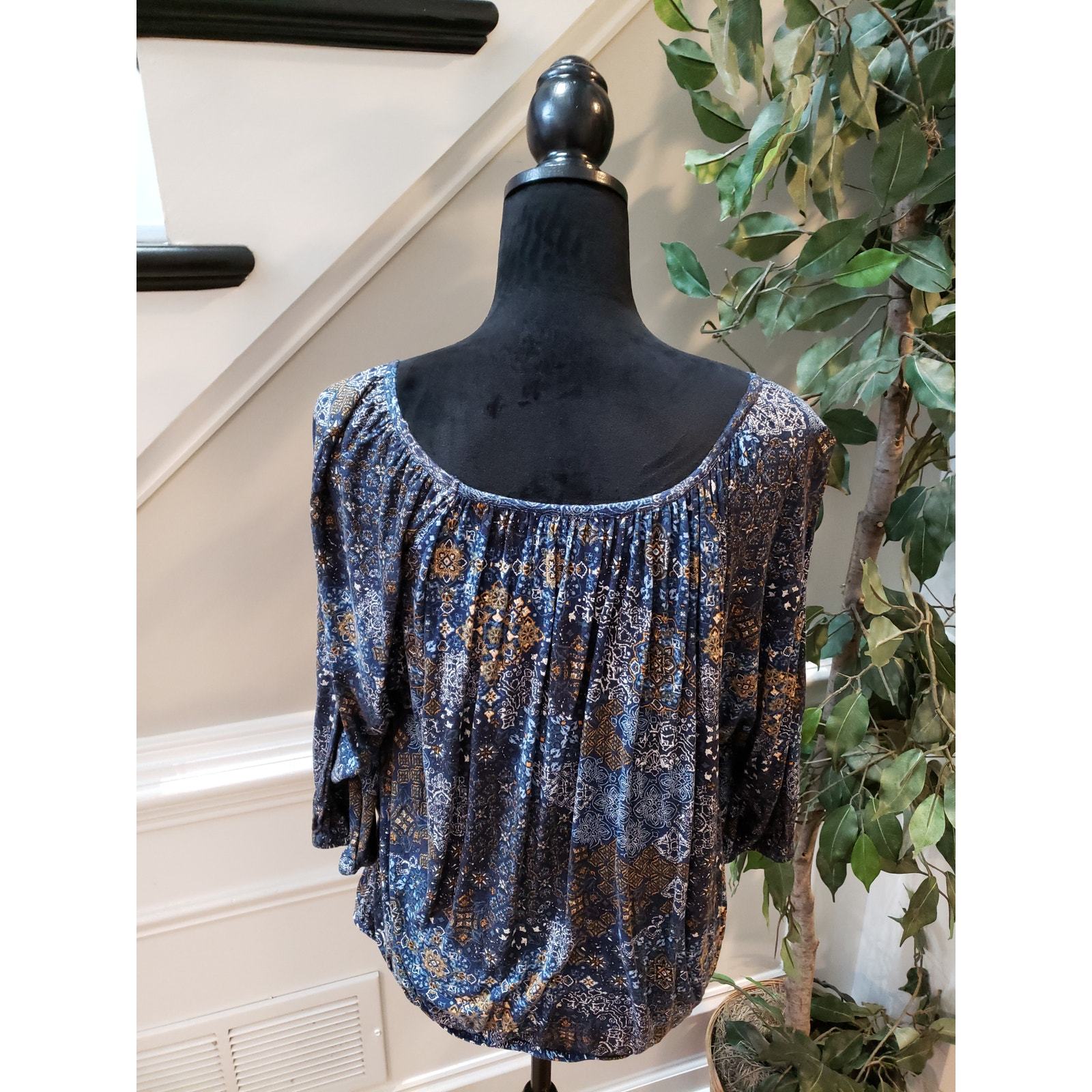 Michael Kors Blouse Womens PXL Blue Gold Boho Peasant Top 3/4 Sleeve Viscose