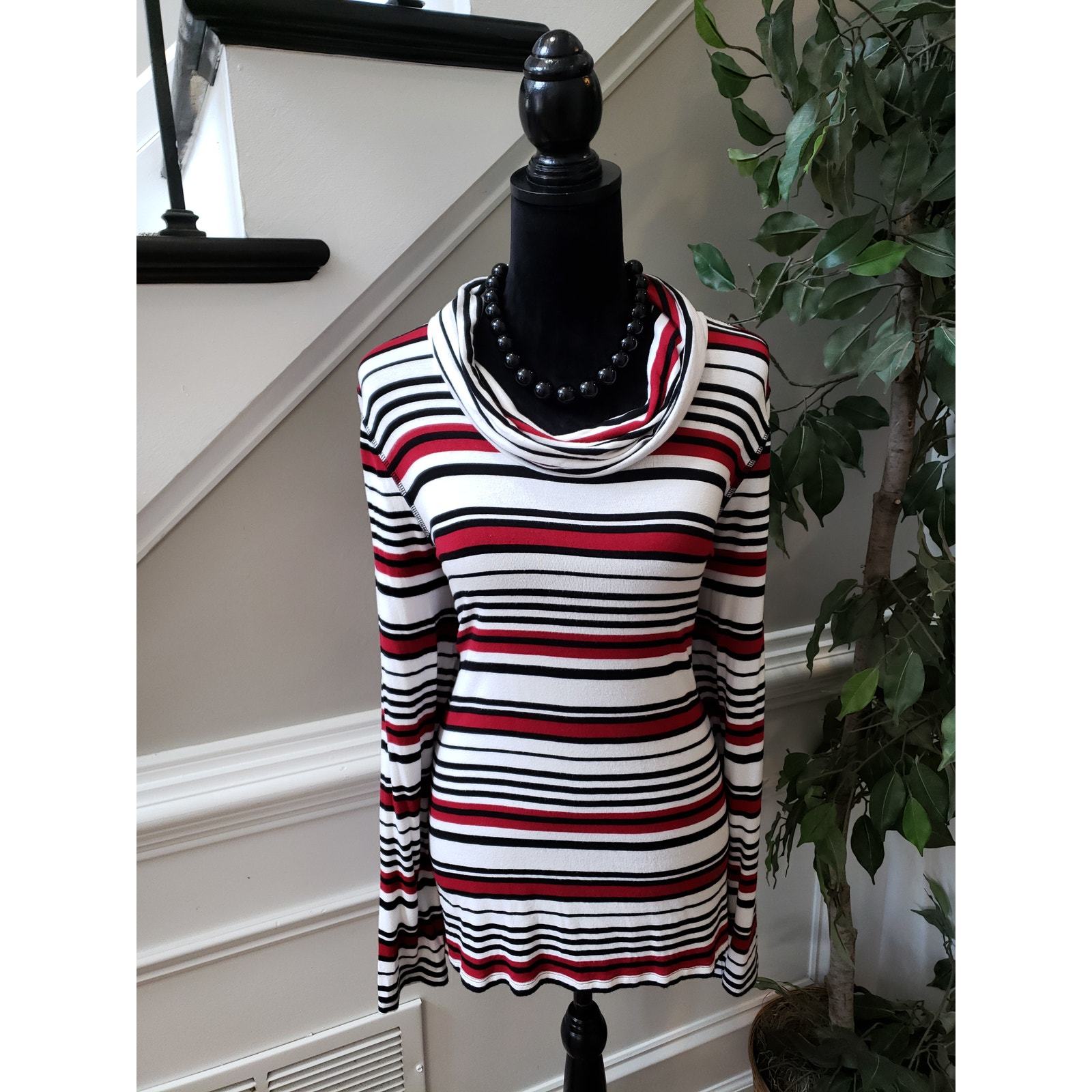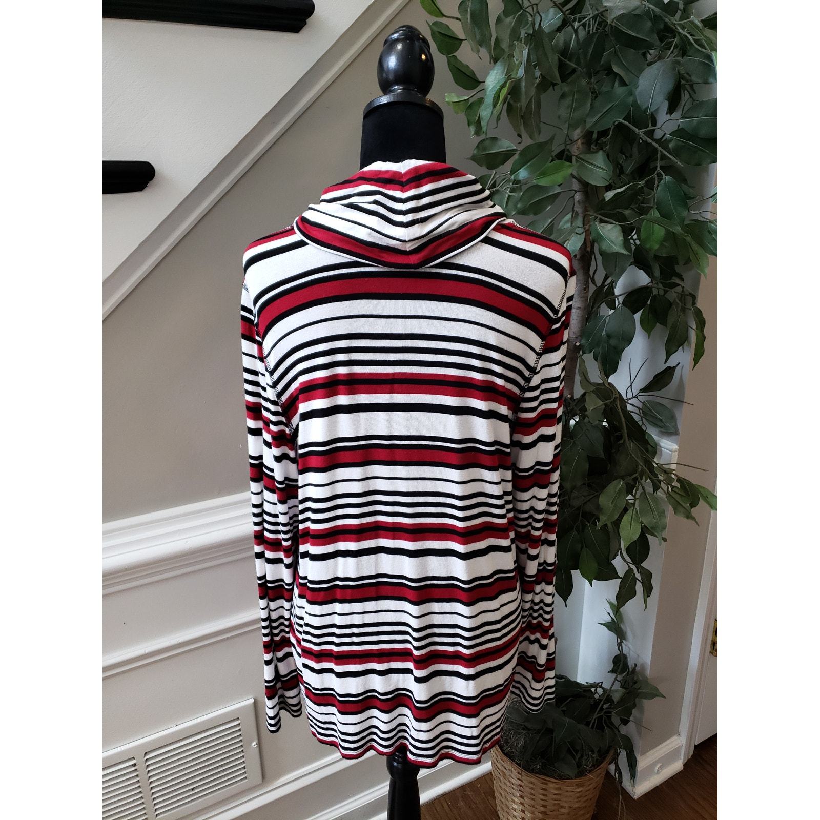 Women's Zenergy by Chico's Red & Black Striped Cowl Neck Long Sleeve Top Size L