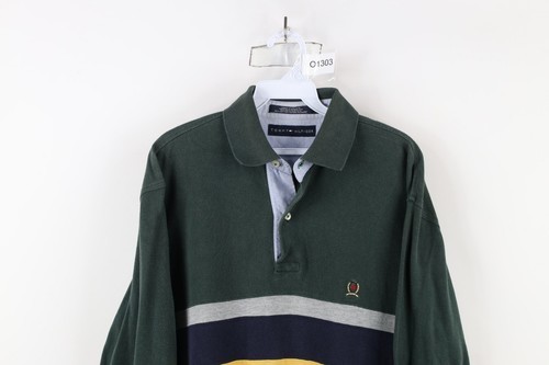 Vtg Tommy Hilfiger Mens Medium Faded Striped Color Block Long Sleeve Rugby Polo