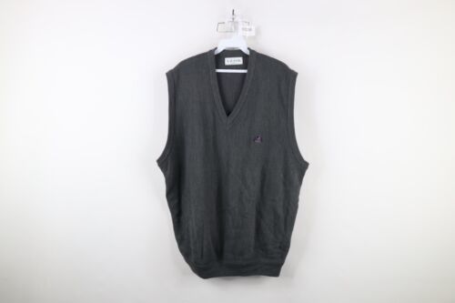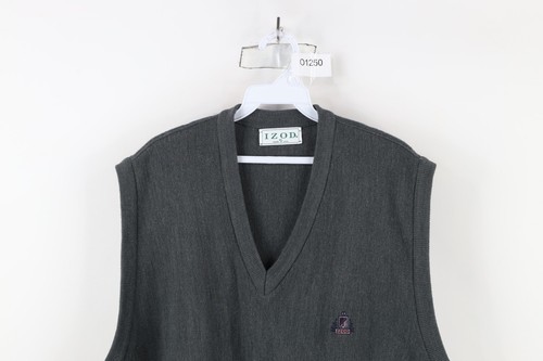 Vintage 90s Izod Mens XL Spell Out Knit V-Neck Sweater Vest Gray USA Acrylic