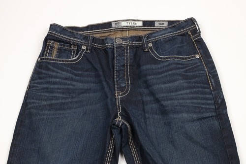 Buckle BKE Mens 36x28 Faded Thick Stitch Tyler Bootleg Wide Leg Denim Jeans Blue