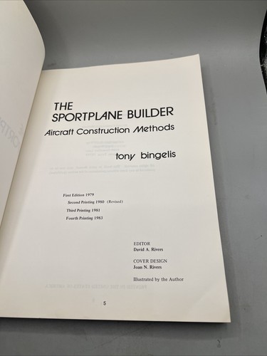 The Sportplane Builder: Aircraft - Paperback, by Tony Bingelis Vintage 1979