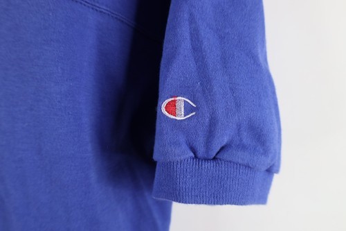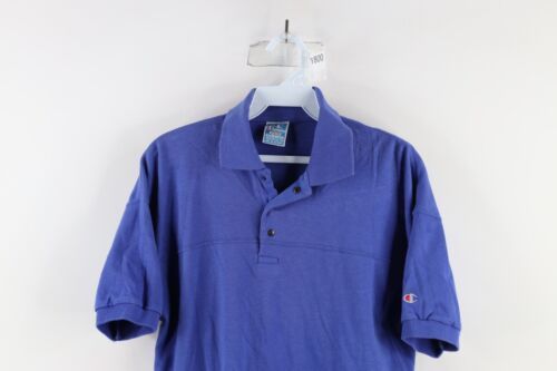 Vintage 80s Champion Mens Medium Faded Short Sleeve Collared Polo Shirt Blue
