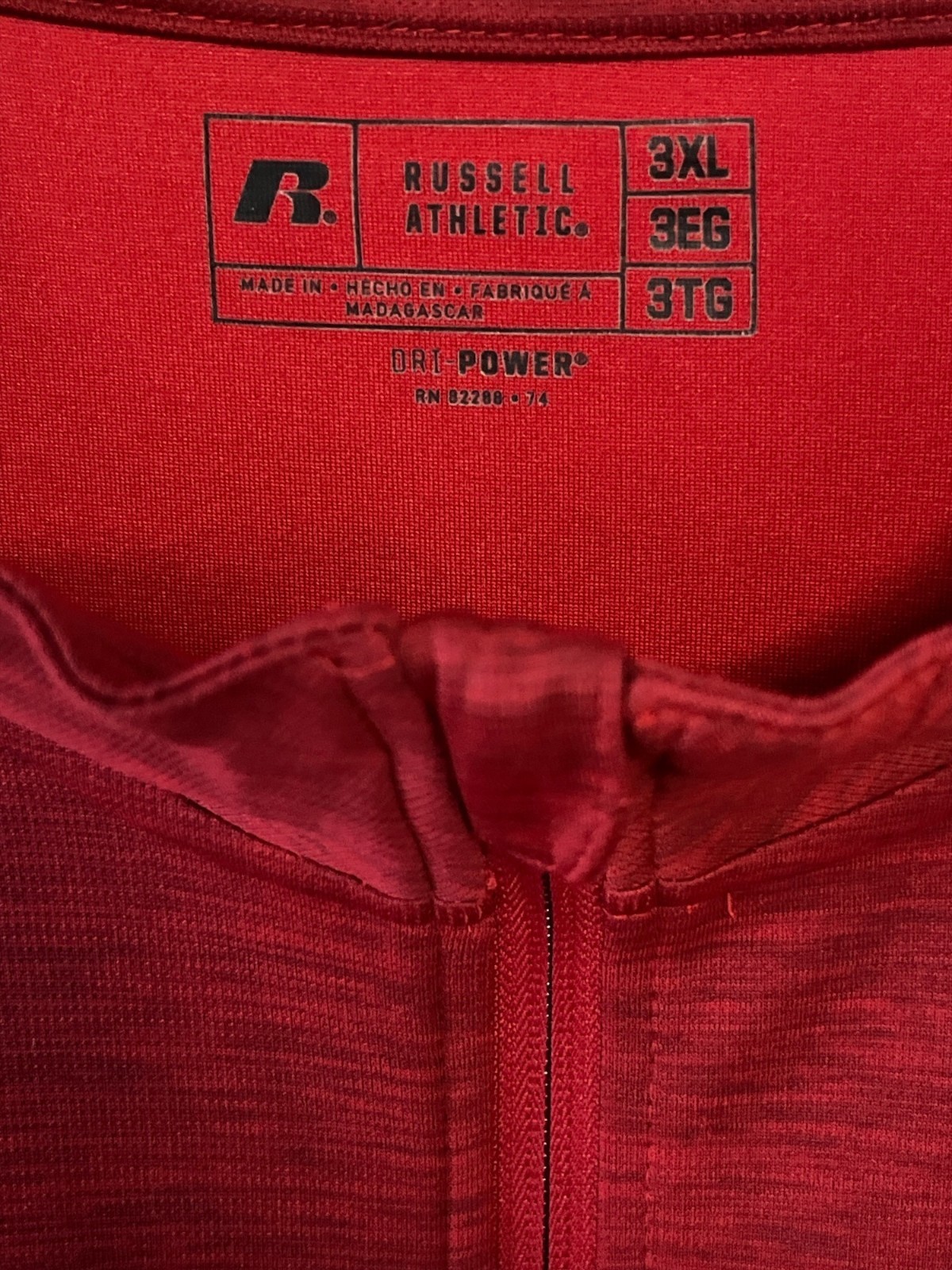Russell pullover, red 3XL shirt, mens athletic top, dri power shirt, moisture wicking, long sleeve top, russell athletic, 1/4 zip shirt, workout layer, plus size menswear, red zip top, gym pullover