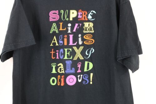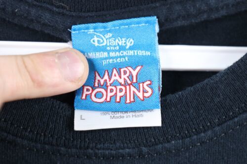 Vtg Disney Mens Large Faded Spell Out Mary Poppins Short Sleeve T-Shirt Black