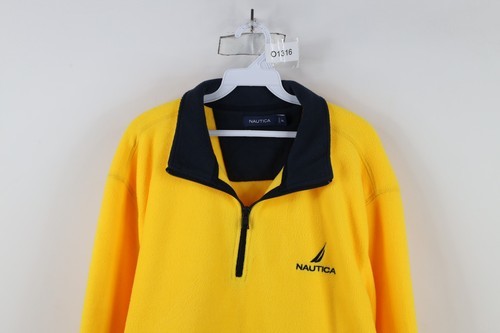 Vintage 90s Nautica Mens 2XL Spell Out Sailboat Half Zip Fleece Pullover Sweater