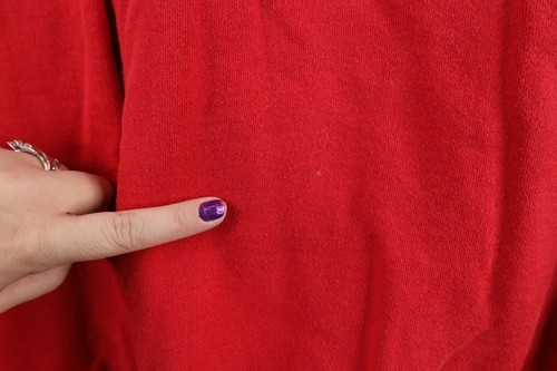 Has stain on front bottom and color fade