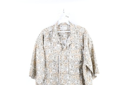 Vtg 90s Columbia Mens XL Spell Out Abstract Collared Hiking Camp Button Shirt