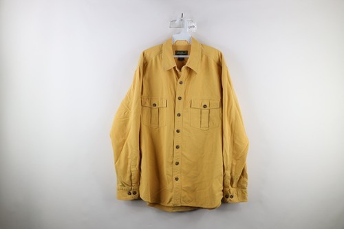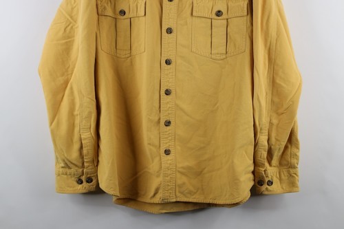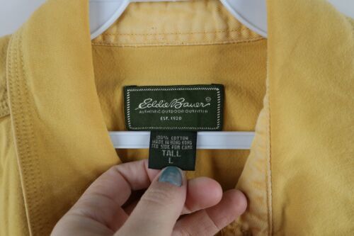 Vintage Eddie Bauer Mens Large Tall Faded Chamois Cloth Button Shirt Yellow