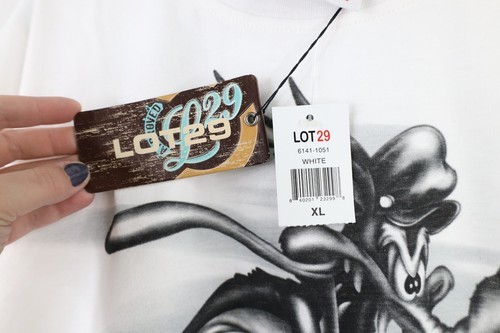 NOS Vintage Lot 29 Mens XL Spell Out Looney Tunes Wile E Coyote T-Shirt White