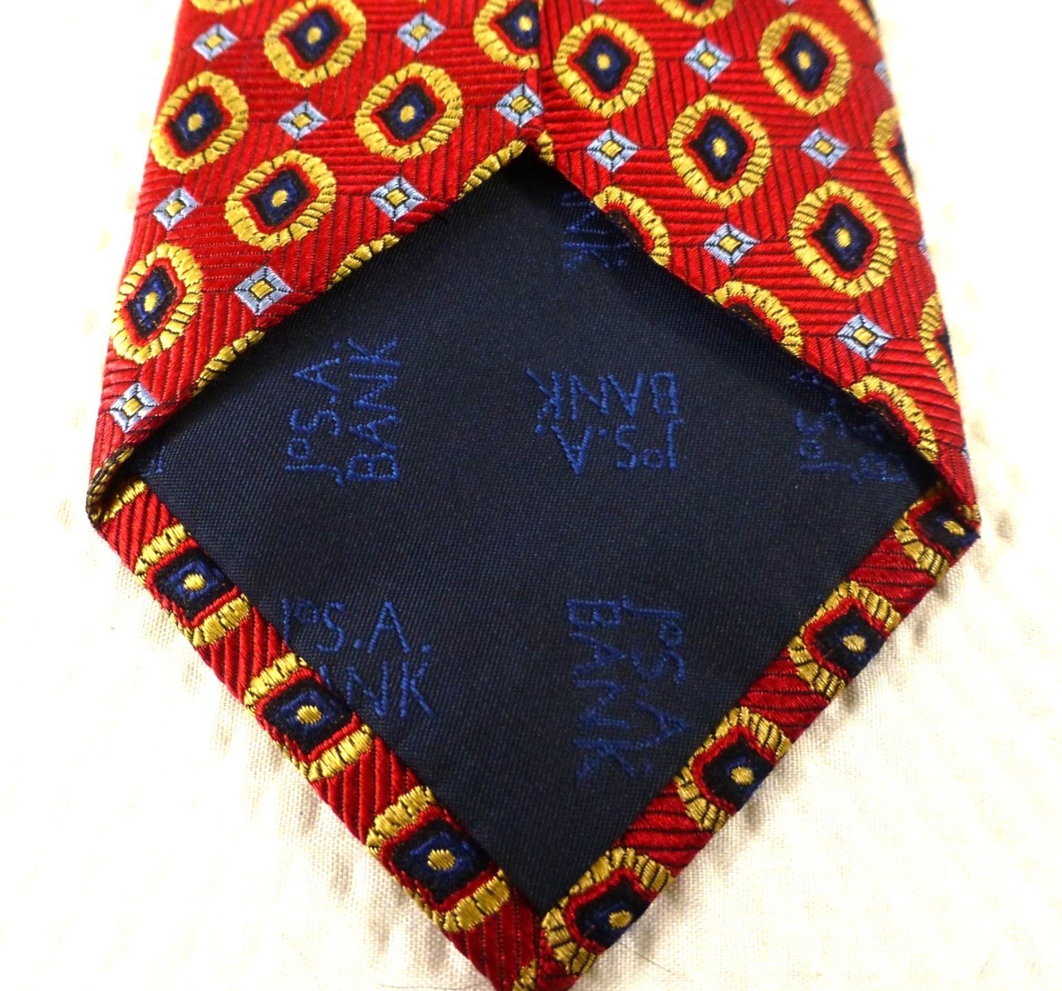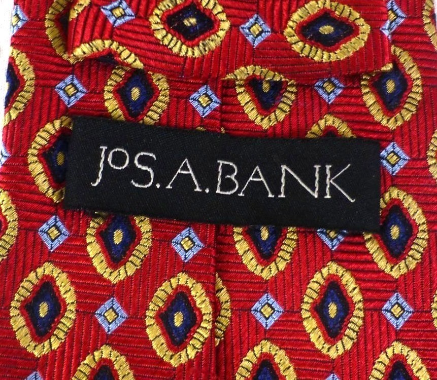 JOS A BANK Mens Red Geometric Pattern 100% Silk Tie Made In China