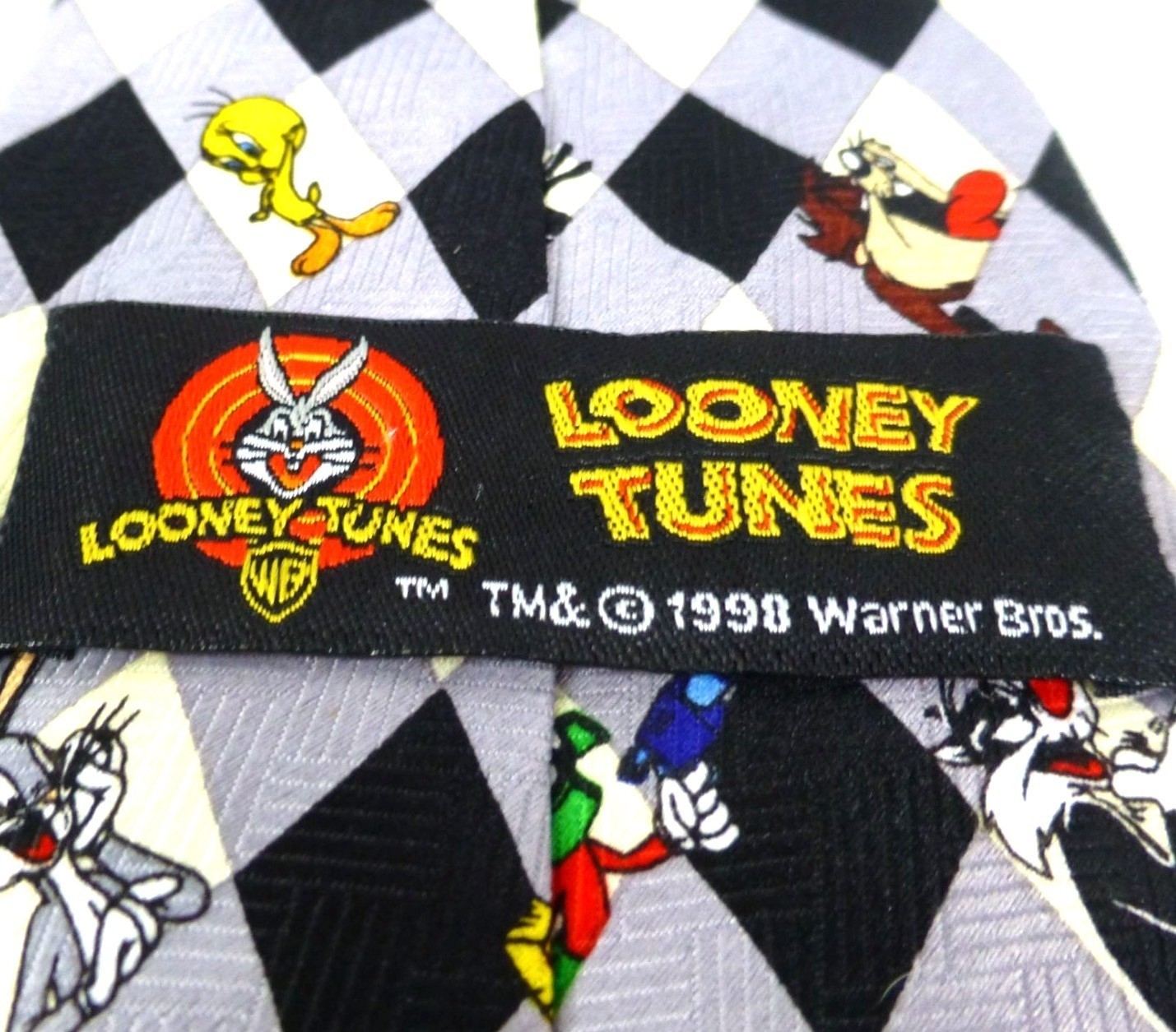 Looney Tunes Warner Bros. 1998 Polyester Necktie With Diamond Pattern & Characte