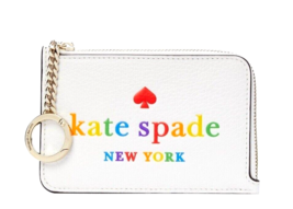 New Kate Spade Pride Medium L-zip Card Holder Rainbow White Dove
