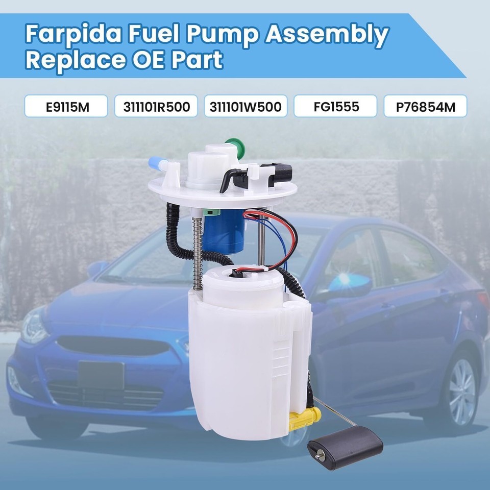 ?Higher Quality? 311101W500 Fuel pump components are manufactured and tested to the same exacting quality standards as our OE fuel pumps to ensure long, reliable service life. ?Replaces Part Number?Fuel Pump Assembly with Sending Unit Replace 31110-B2500, 31110B2500, FG1898, SP3303M. ?Compatible Vehicle ?311101R500 Fuel Pump Assembly with Sending Unit fit For Kia Rio 2012-2015 L4 1.6L ,For Hyundai Accent 2012-2014 L4 1.6L ,For Hyundai Accent 2015 L4 1.6L (To 12/31/2014). ?Features?The 311101W500 Fuel Pump Assembly is to suck fuel from the tank, pressurize it and deliver it to the fuel supply line, and work with the fuel pressure regulator to build up a certain fuel pressure. Maximize the performance of your car. ?Services?At Farpida, we provide 7/24 response service, if you are not satisfied with the product, you can return it within 30 days, if you have any questions, please contact-us!