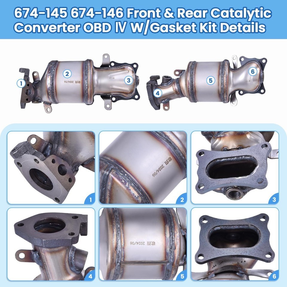 674-145 674-146 Front & Rear Catalytic Converter with Bolts Gasket fits for