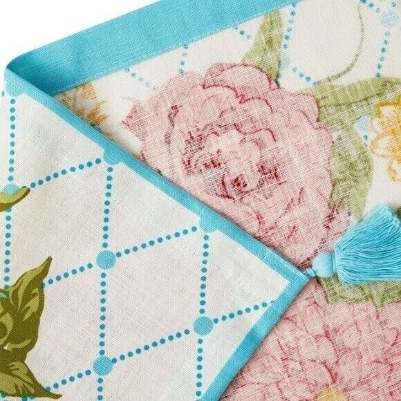 Pioneer Woman Sweet Rose Table Throw Runner Floral Blue Tassels 50-in Gift NEW