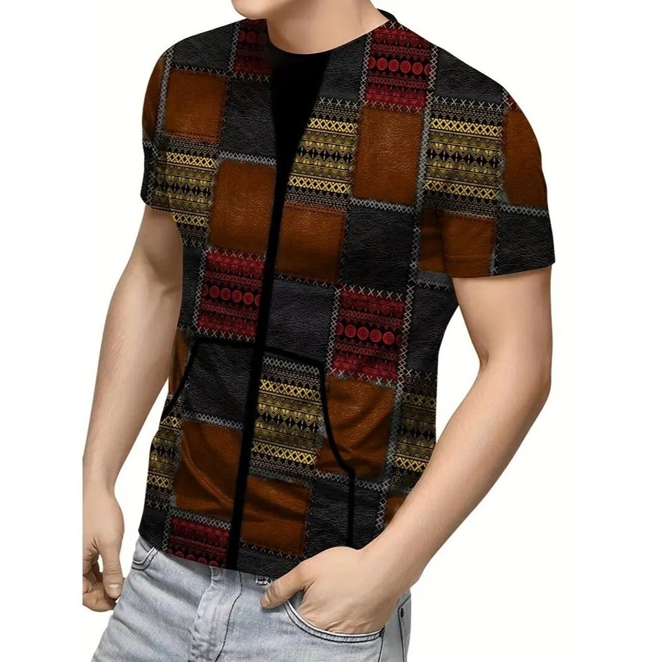 Stay stylish with the Tribal Men's Geometric Pattern Short Sleeve T-Shirt in Size XL by Geometric Tee Shirt. This brown, unisex, polyester tee combines comfort with a striking design.