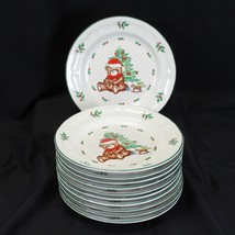 Meiwa Christmas Tree Bear Salad Plates 7-3/4" Set of 11 Xmas