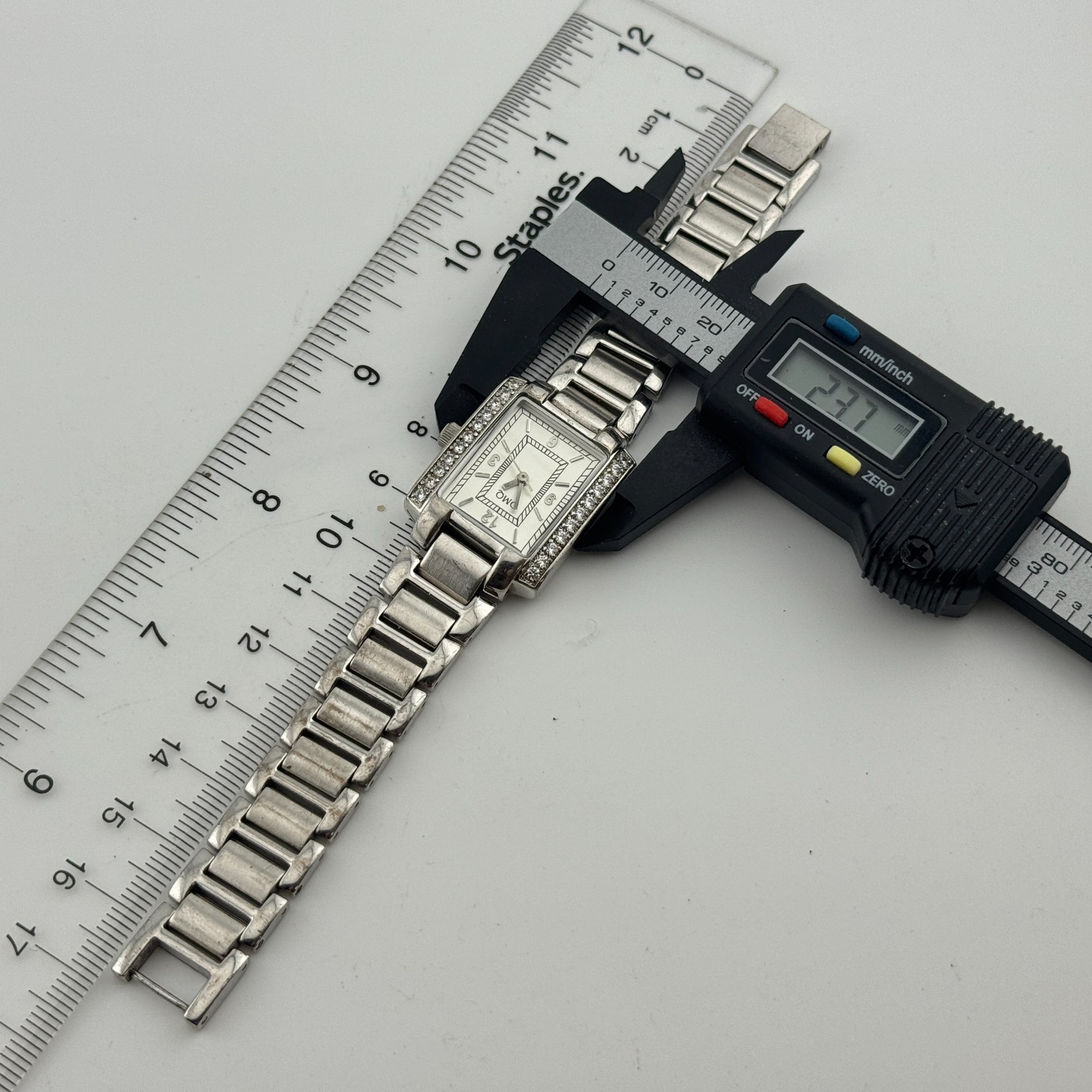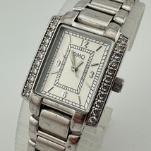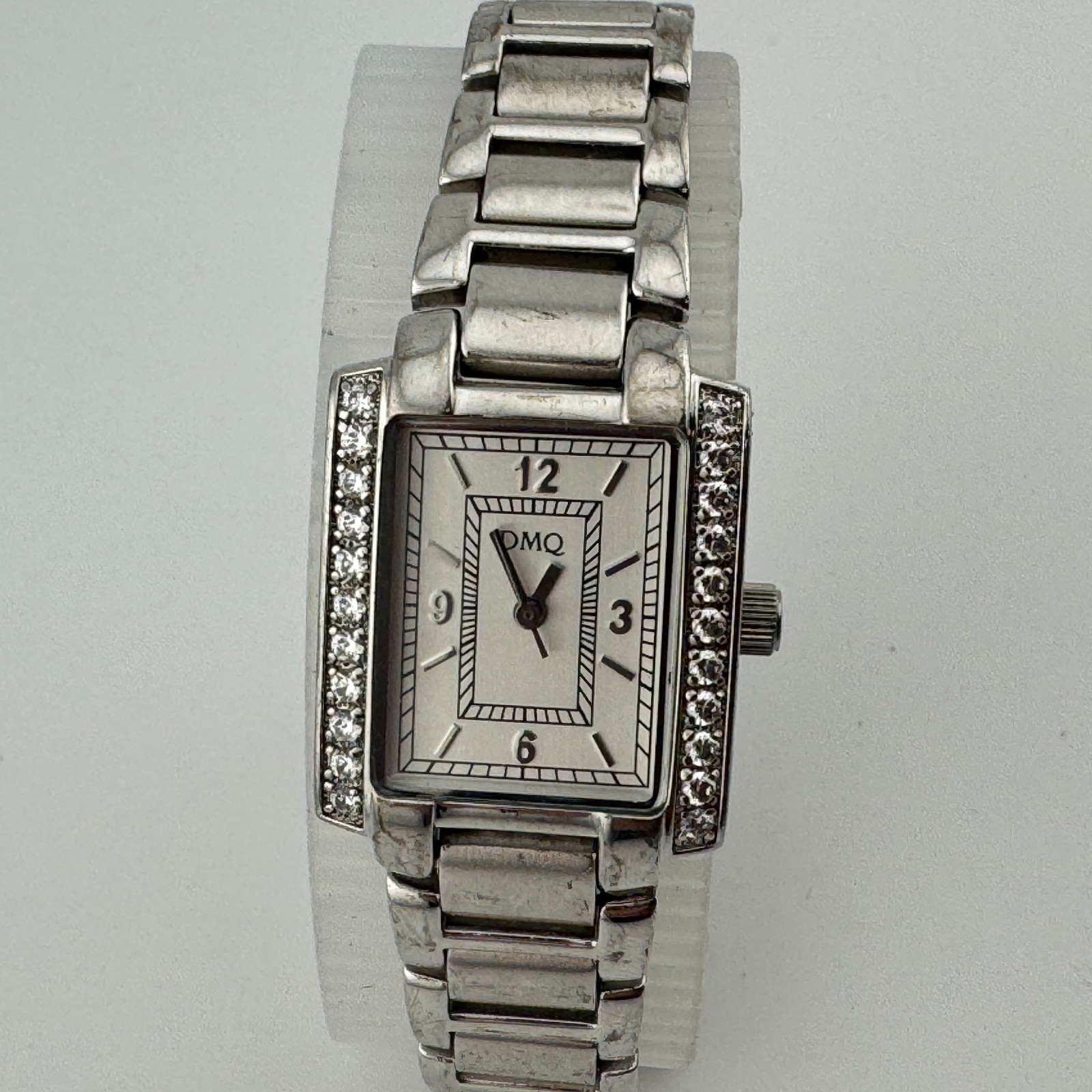 DMQ Quartz Watch DQ/1115 Women Silver CZ Stone Rectangle Analog New Batter 6.25"