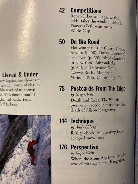 Climbing Magazine February-March 1996 No. 158 Robin Erbesfield, Queen Creek AR Very good. Please refer to images.
