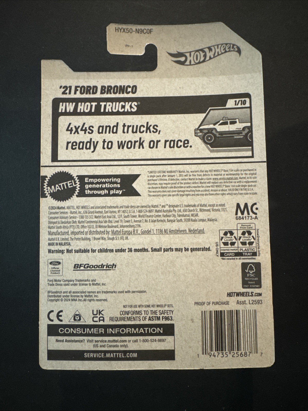 2025 Hot Wheels 1/10 Hot Trucks Yellow '21 Ford Bronco HYX50 20/250 New On Card