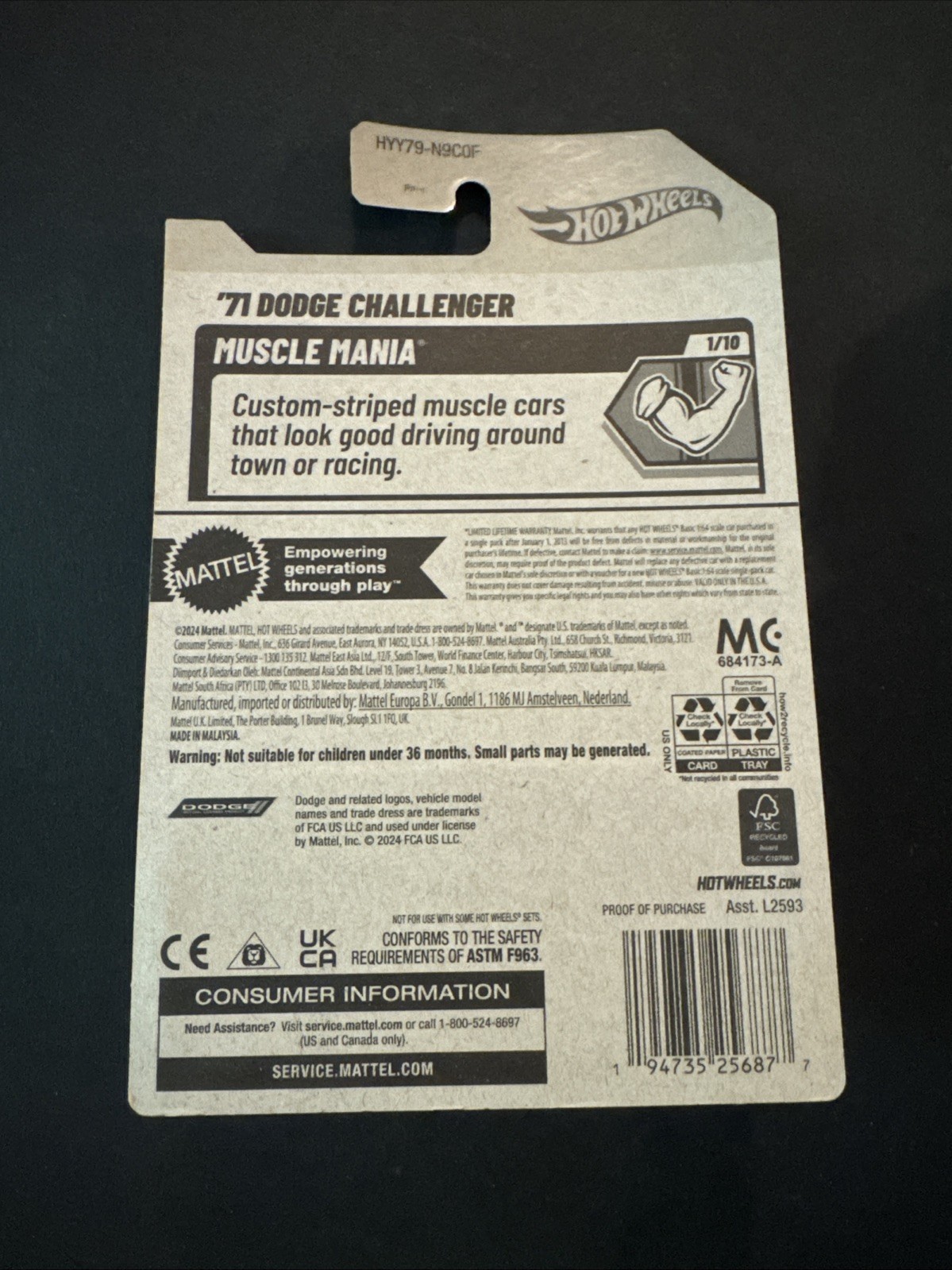 Hot Wheels Muscle Mania 1/10 ‘71 Dodge Challenger 131/250 New On Card