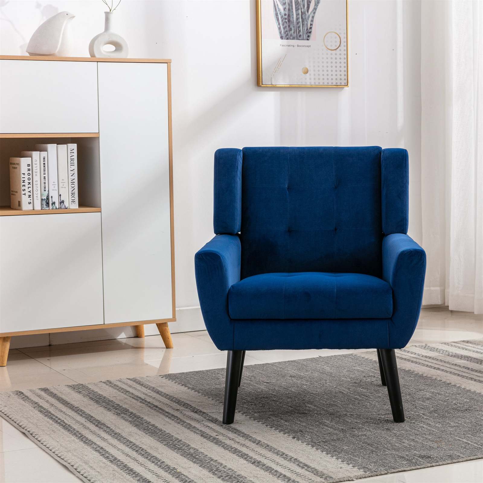Modern Soft Velvet Ergonomic Accent Chair with Black Legs