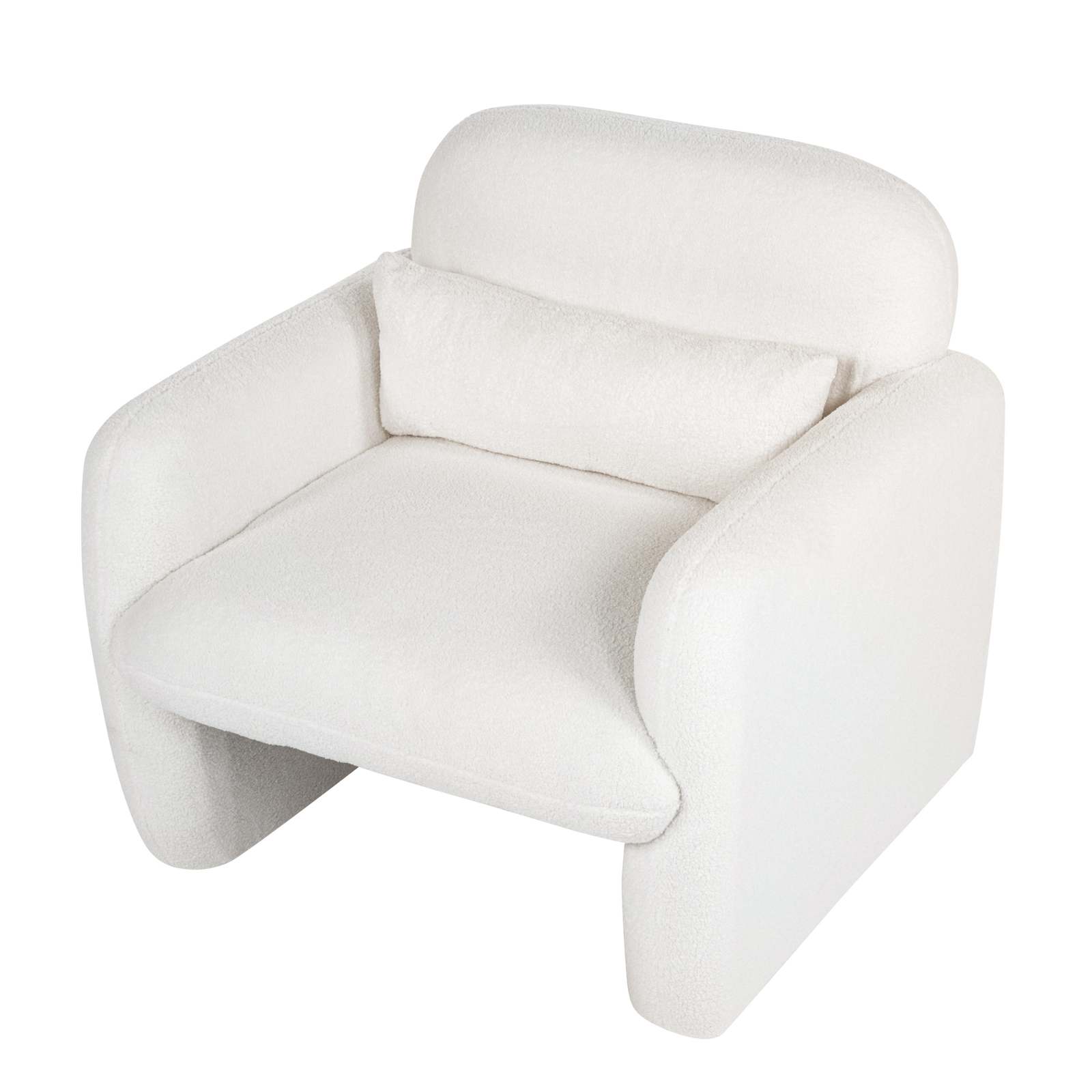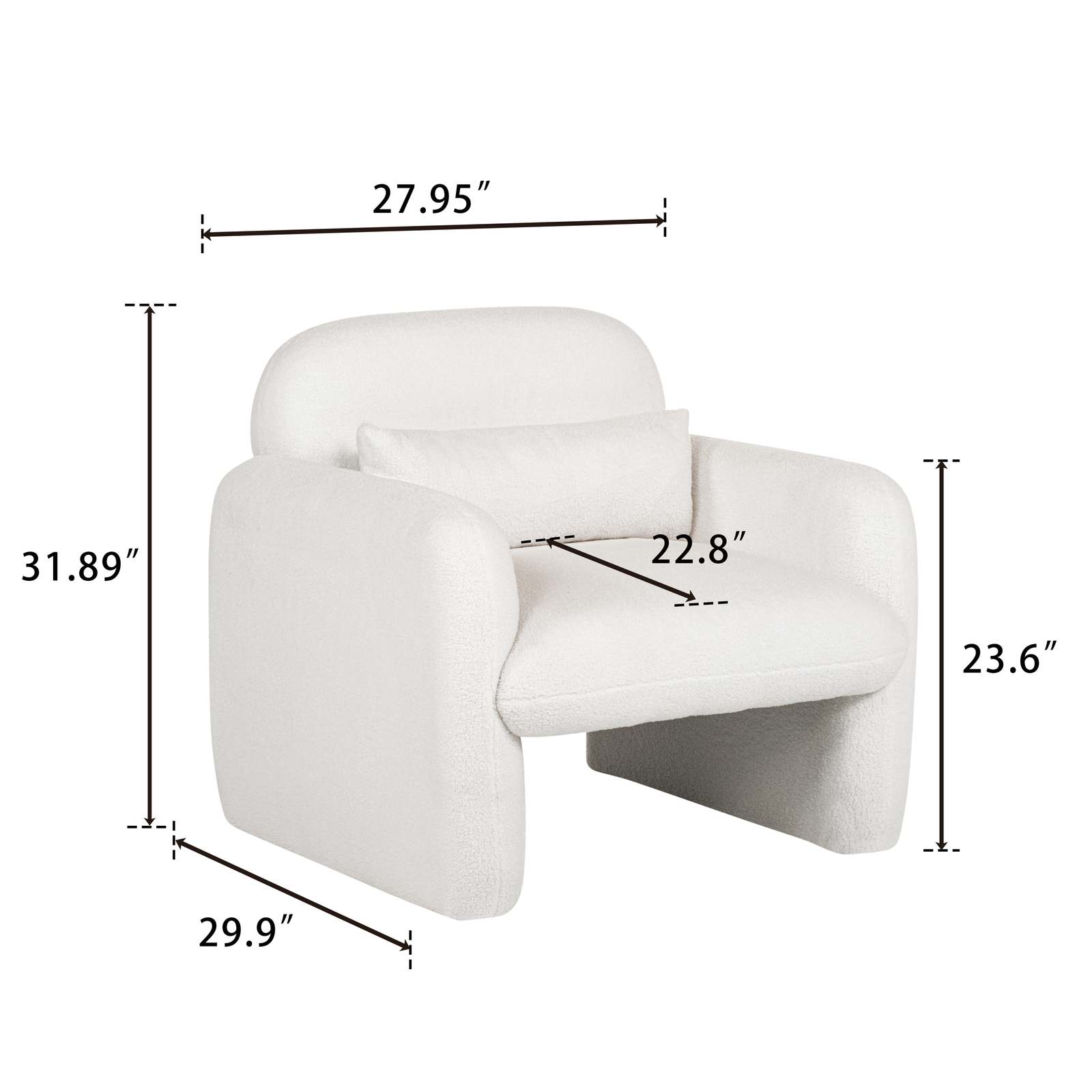 Beige Teddy Fleece Single Sofa Chair, Armchair Accent Chair w/ Pillow