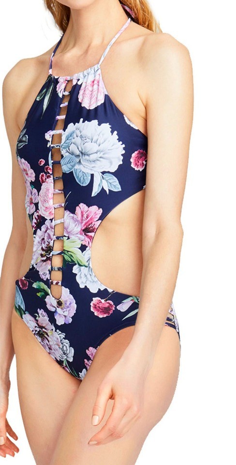 Rachel Roy One-Piece High Neck Monokini SZ L Navy Floral