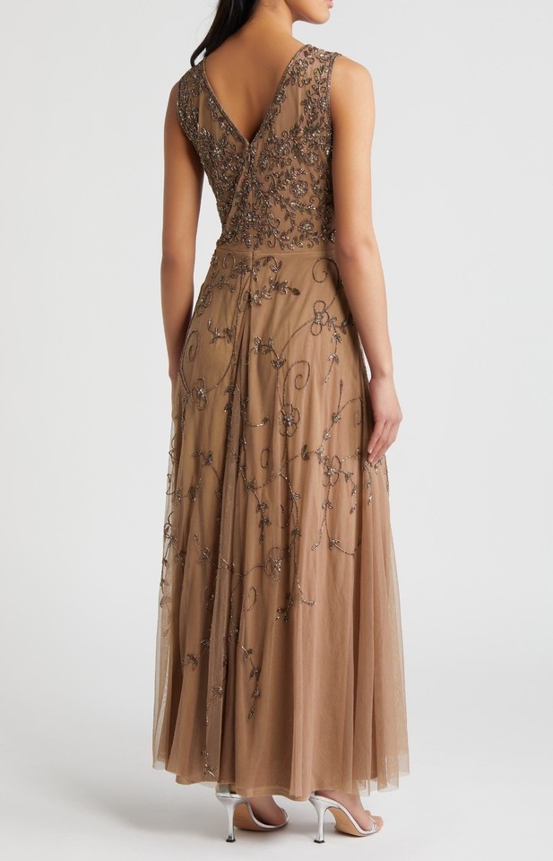 Pisarro Nights Beaded Sleeveless Mesh Gown SZ 8 ($268) Brown