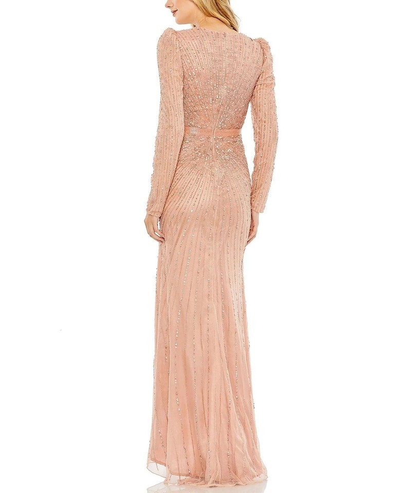 Mac Duggal 67842 Sequined Wrap Over Long Sleeve Gown Sz 4 Rose $498