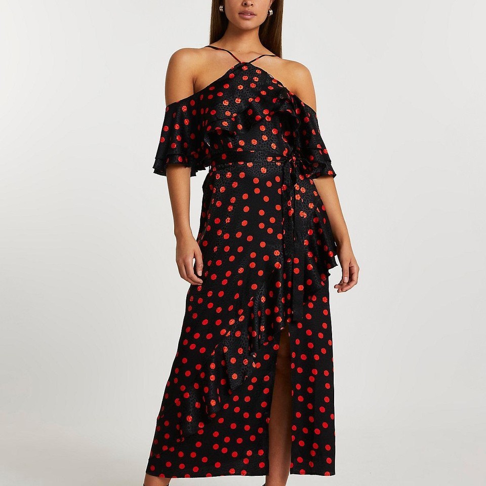 River Island Cold Shoulder Spot Frill Dress and similar items