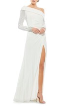 Ieena Mac Duggal 12231A One Shoulder LongSleeve Jersey Gown SZ 0 White