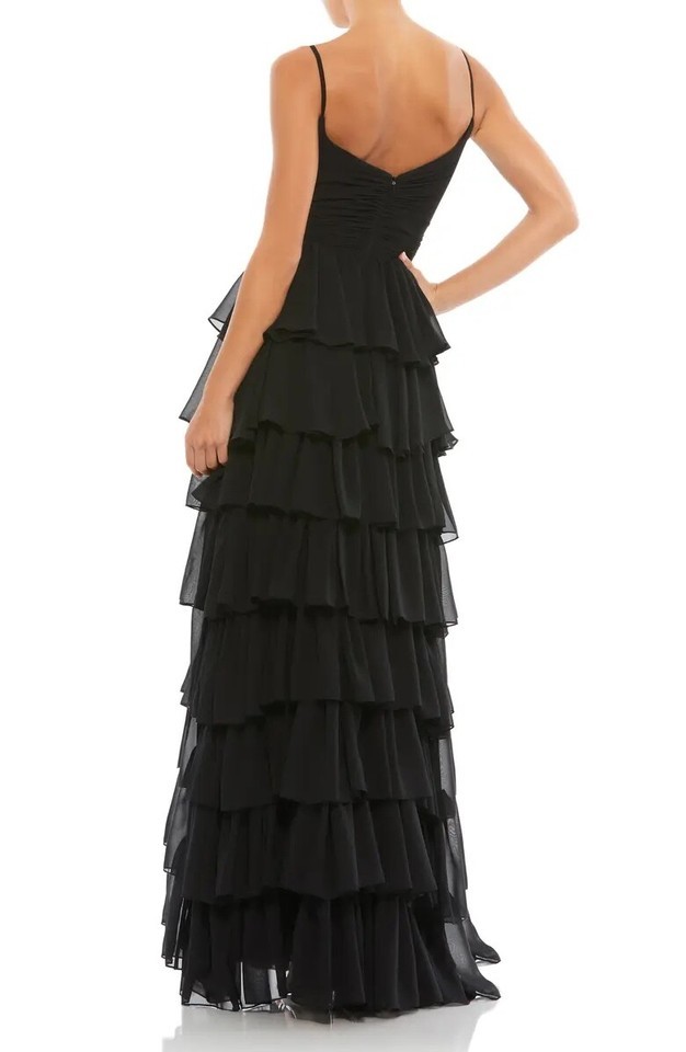 Ieena Mac Duggal 55416 Tiered Ruffle Empire Waist Chiffon Gown SZ 12 Black