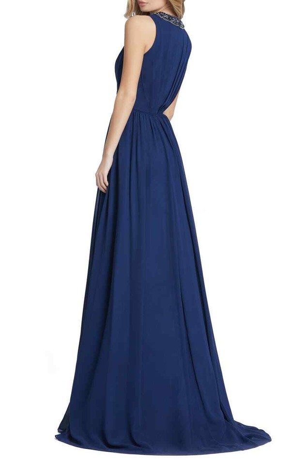 leena for Mac Duggal Embellished High Neck Pleated Gown SZ 4 Midnight