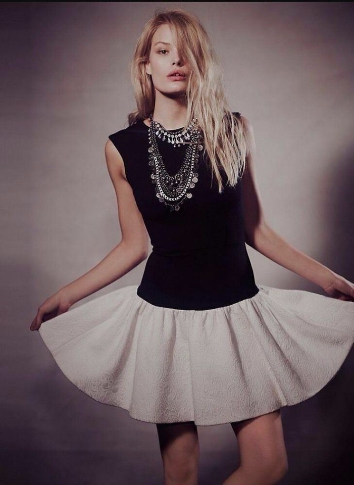 ERIN erin fetherston Drop Waist Ponte & Jacquard Dress Sz 4 Black Ivory