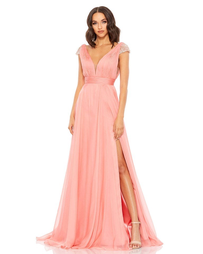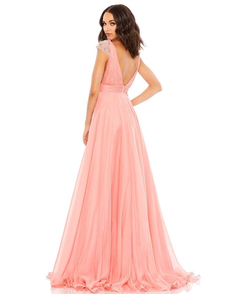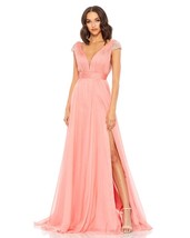 Ieena Mac Duggal 67811 CHIFFON BEADED CAP SLEEVE A LINE GOWN Sz 4 Coral Pink