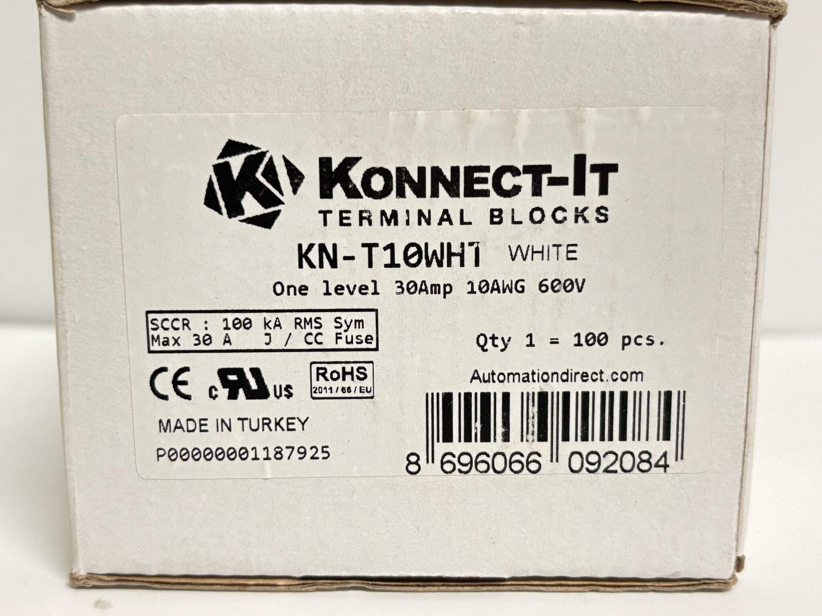 100PK Konnect-It KN-T10WHT DIN Rail Terminal Block, 10AWG, White, 30A, 300V