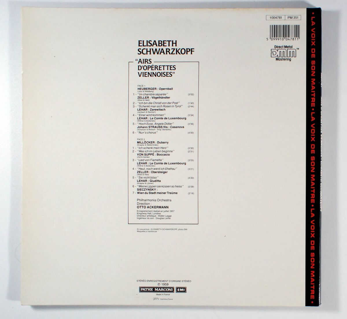 Elizabeth Schwarzkopf - Airs D'Operettes Viennoises (1959) Vinyl LP IMPORT