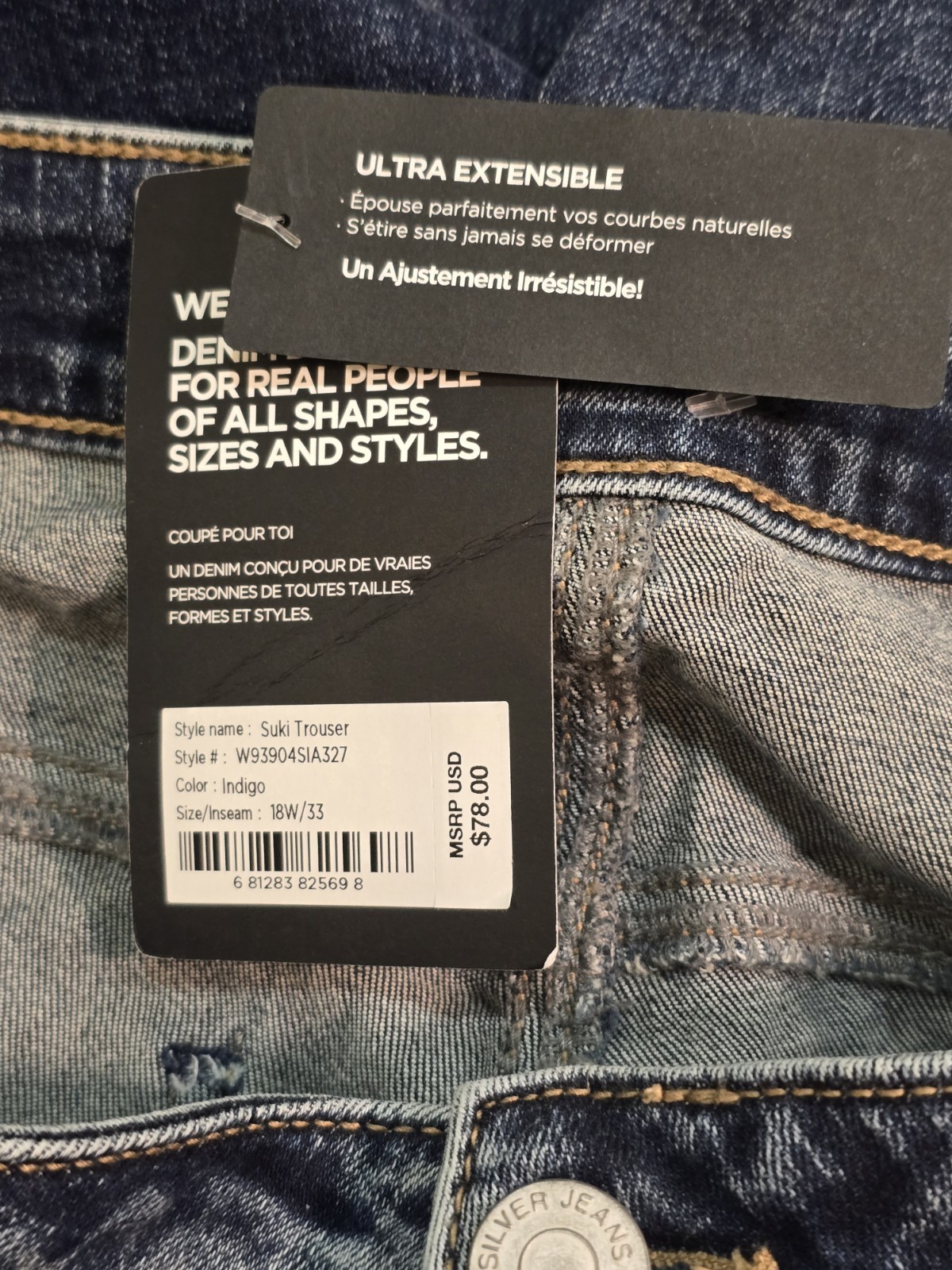 Silver Jeans Co Jeans Womens 18W 38x34 Suki Curvy Fit Mid Rise Trouser Denim NWT