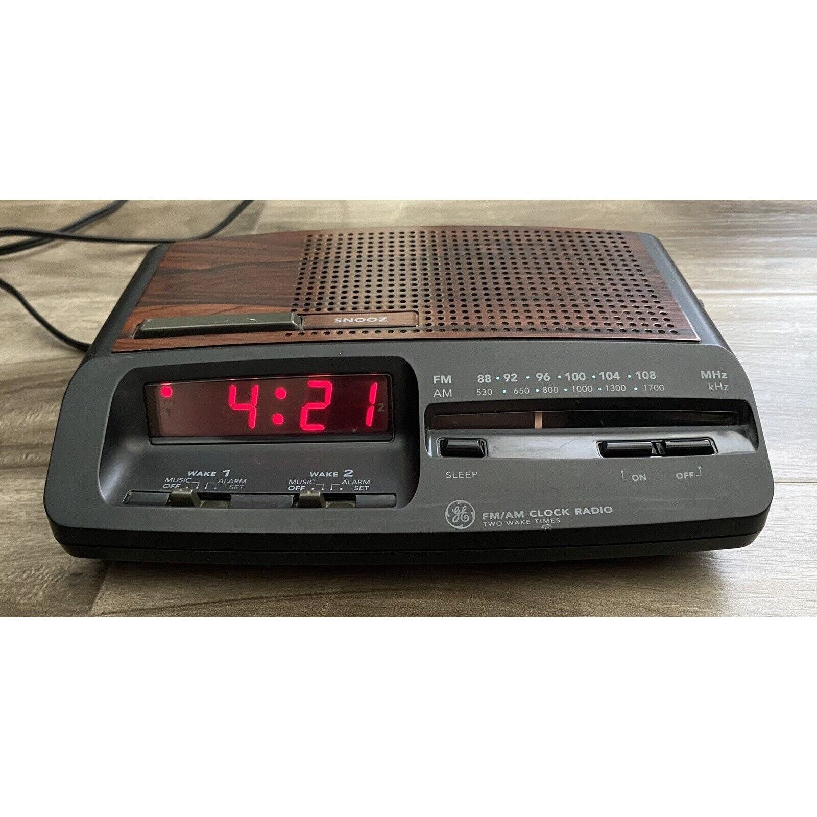Vintage GE General Electric FM/AM Alarm Clock Radio 7-4621A Wood Grain - Tested