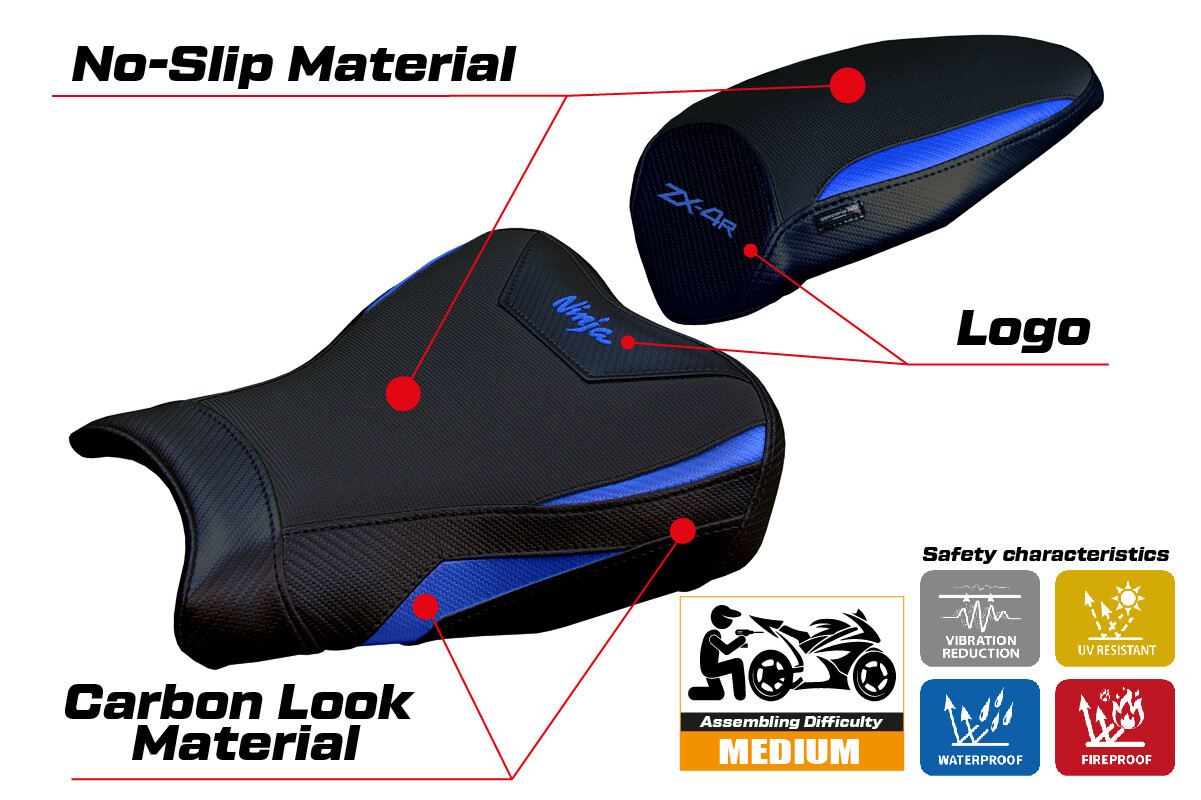 Kawasaki ZX4R 2023 2024 2025 Seat Cover Tappezzeria Blue Black