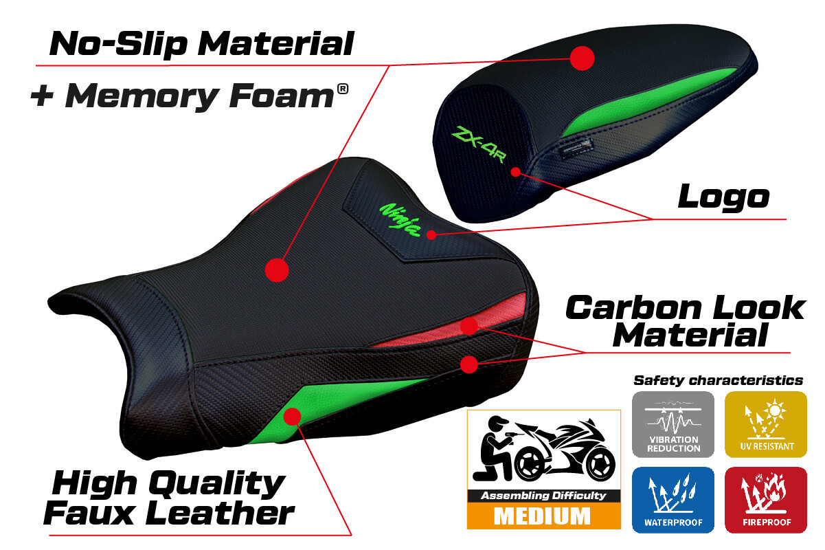 Kawasaki ZX4R 2023 2024 2025 Seat Cover Tappezzeria Comfort Green Red Black