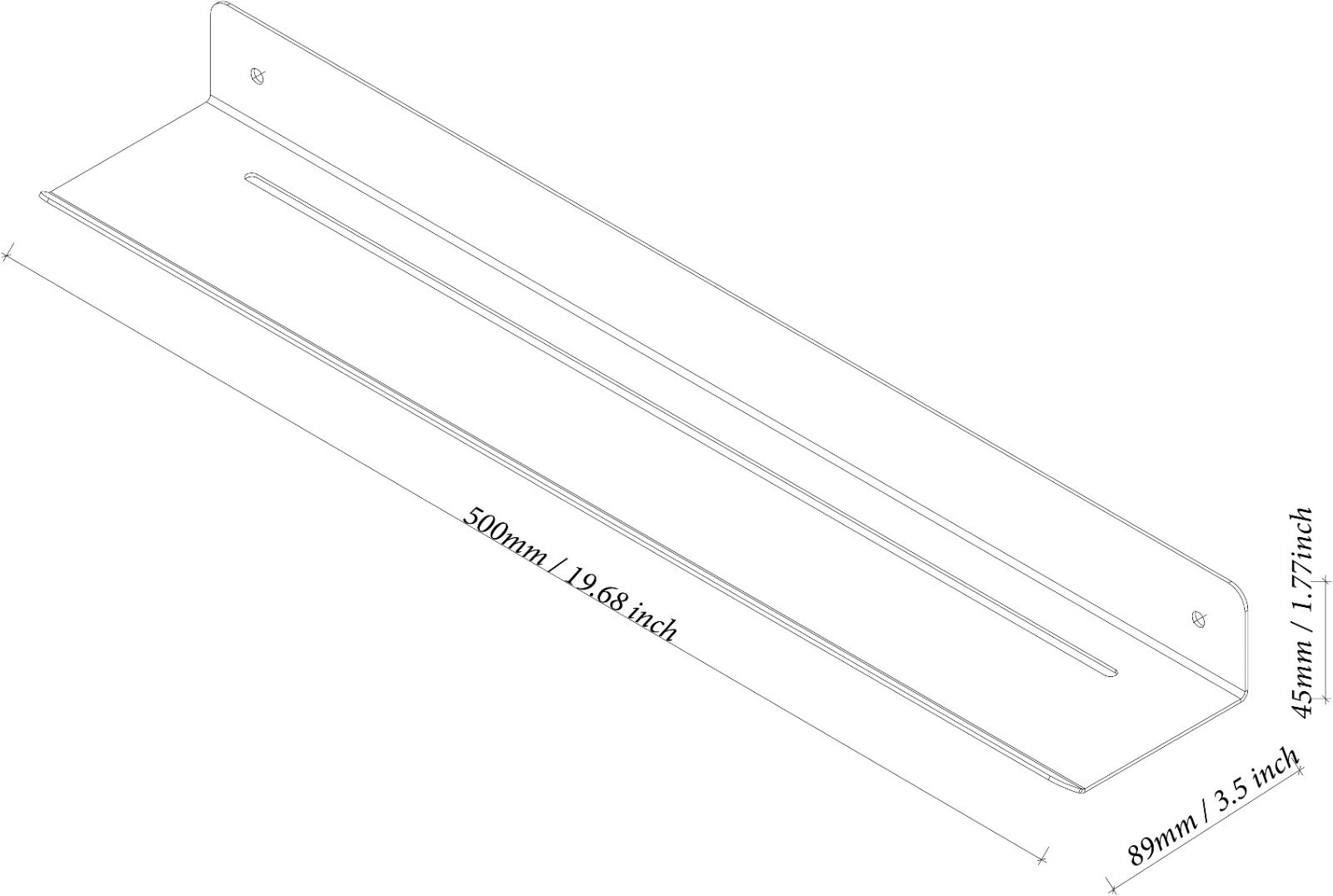 Dimension: 19.7?(L) x 1.77?(W) x 3.5?(H)