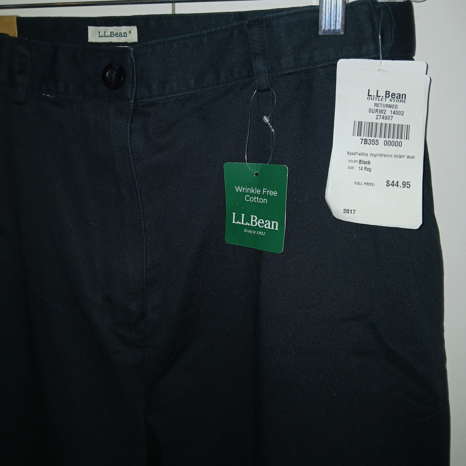 THIS IS A NICE PAIR OF LADIES L.L. BEAN BLACK CROPPED 100% COTTON PANTS IN A SIZE 14 REGULAR. THEY ARE NEW WITH TAGS RETURNED ITEM FROM THE OUTLET STORE.