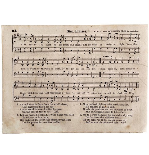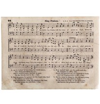 1865 Sing Praises Victorian Sheet Music Small Page Rare Happy Voices PCBG15A