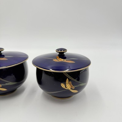 Arita Ware Retro Koransha Lapis Gold Tea Cups With Lid Blue Cobalt Porcelain