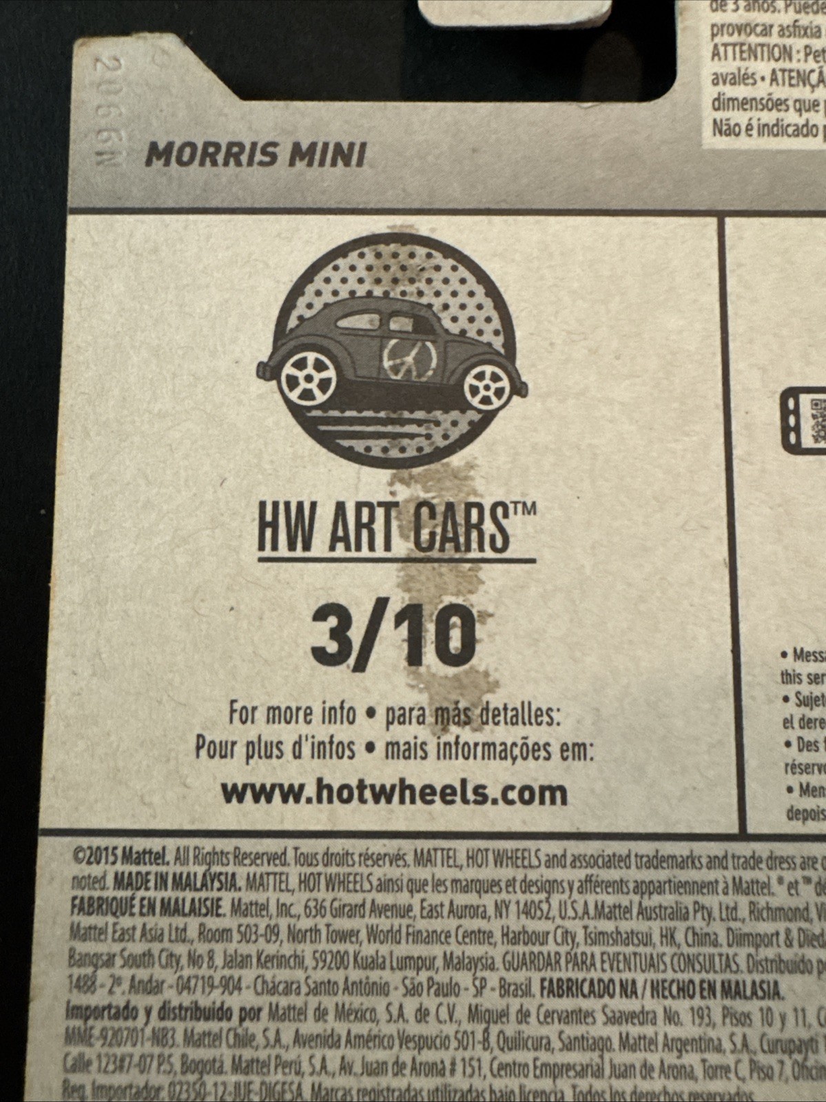 Hot Wheels ~ MORRIS MINI WHITE VERSION ~ 2015 HW Art Cars 3/10 193/250 See Photo